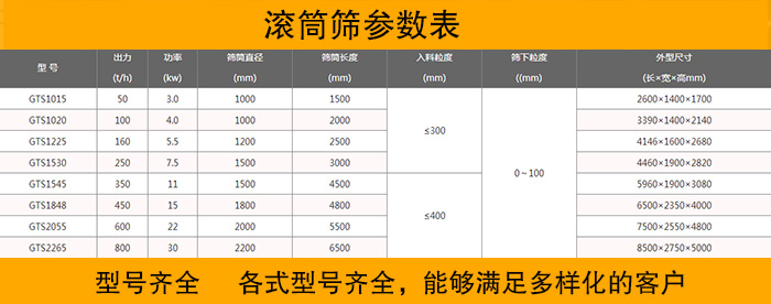 大漢作為專業(yè)的滾筒篩生產(chǎn)廠家,積累了大量的生產(chǎn)經(jīng)驗(yàn)和技術(shù),能夠生產(chǎn)的滾筒篩型號和種類多種多樣,滿足各種各樣的用戶需求,并且可以在客戶提出特殊的需要時(shí),也完全有能力設(shè)計(jì)出適合客戶的方案,定制其需要的產(chǎn)品。
